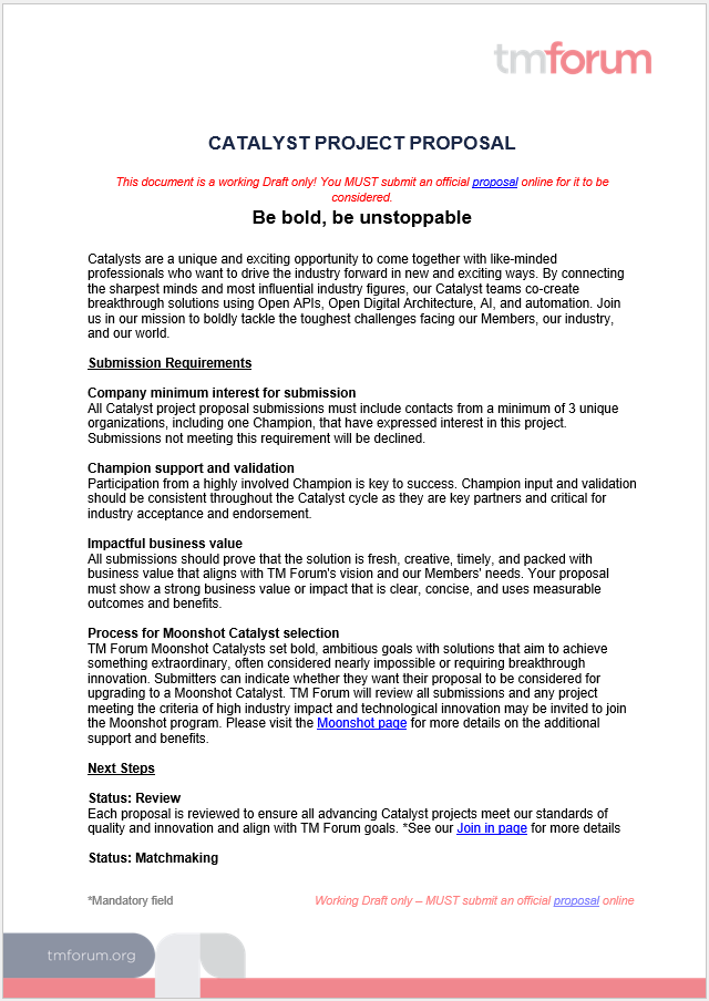 - Draft and agree the idea for your Catalyst project