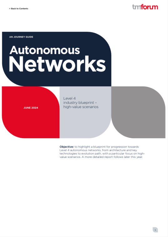 Autonomous networks (AN) promise to be transformative for CSPs, enabling them to operate more efficiently, deliver better customer experiences and innovate rapidly. TM Forum’s community sits at the center of an industry-wide collaboration to drive the uptake and evolution of AN technology, processes and the business models they enable. This report highlights a blueprint for progression towards Level 4 autonomous networks – a state of high autononomy – from architecture and key technologies to evolution path, with a particular focus on high-value scenarios.
